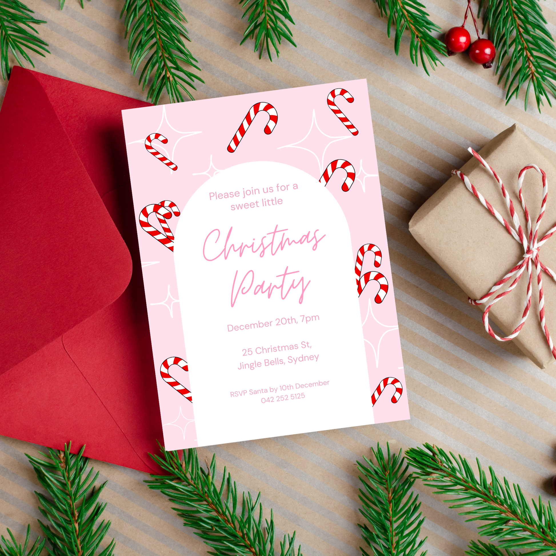 Add a sweet touch to your holiday celebrations with our vibrant Candy Cane Digital Invitations! Perfect for Christmas parties, winter weddings, or holiday gatherings, this festive design features classic red and white candy cane stripes with playful accents of pink, creating a fun and cheerful holiday vibe.