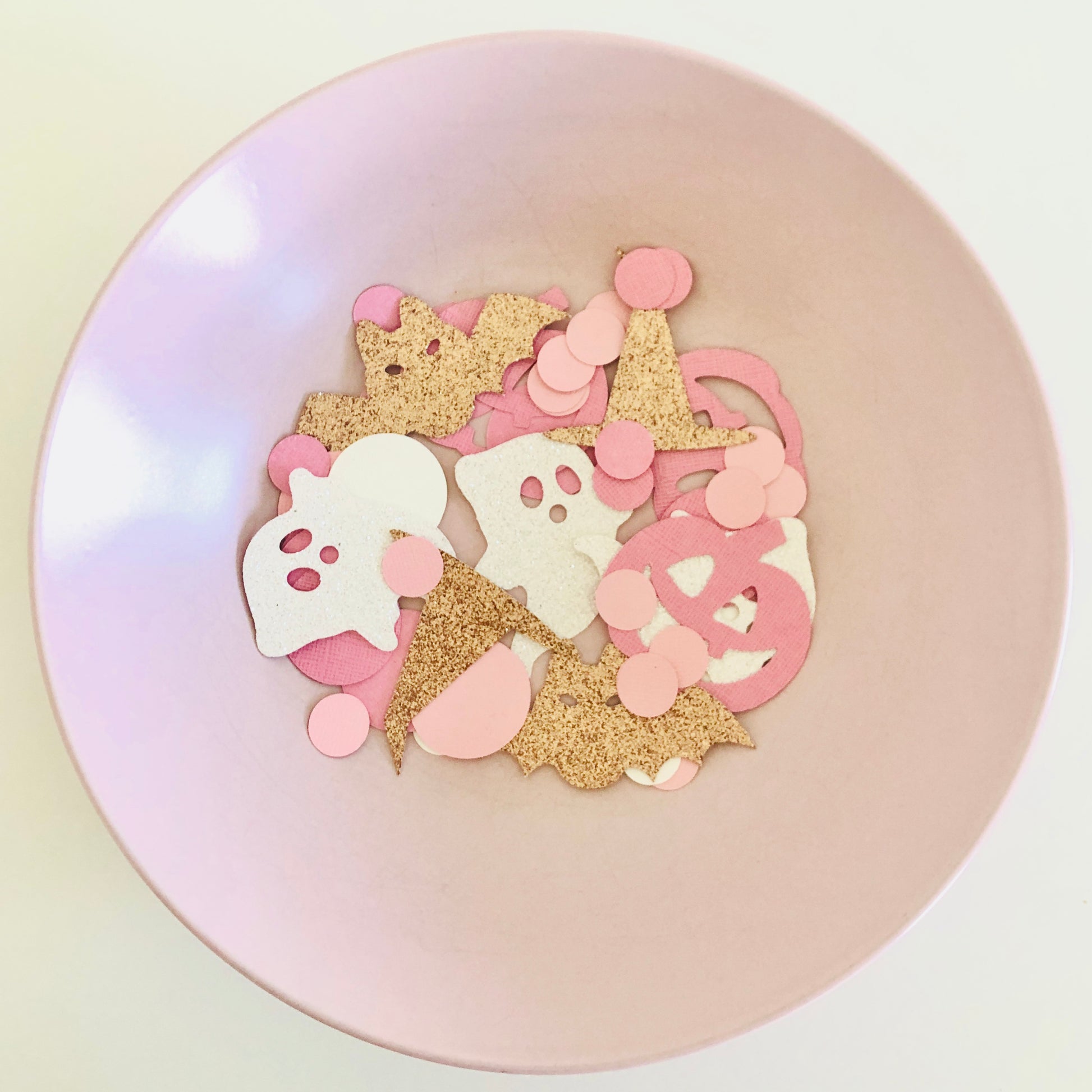 These cute pastel pink and white Halloween 👻 Confetti Table Scatters are perfect for decorating the table, adding a little surprise to your trick-or-treat bags ✨ or decorating your home.