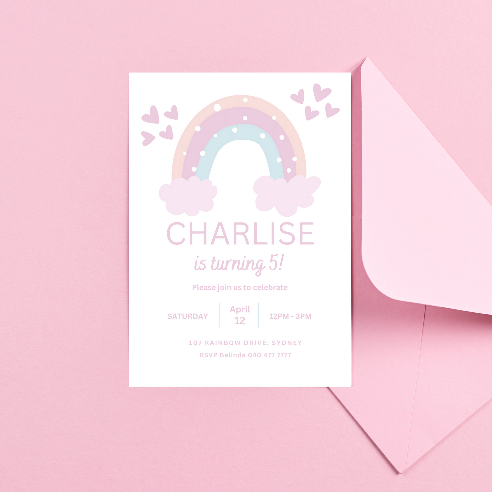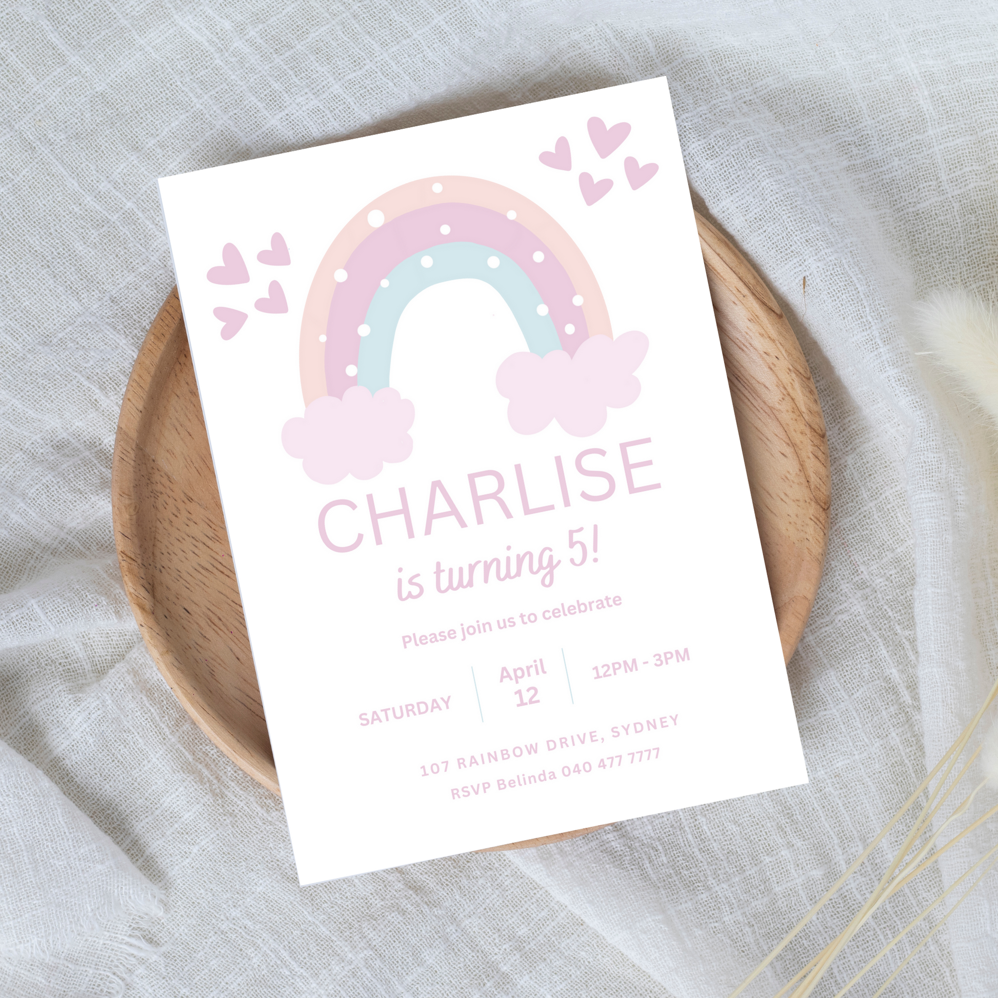 Pastel Rainbow Birthday Invitation INSTANT DOWNLOAD