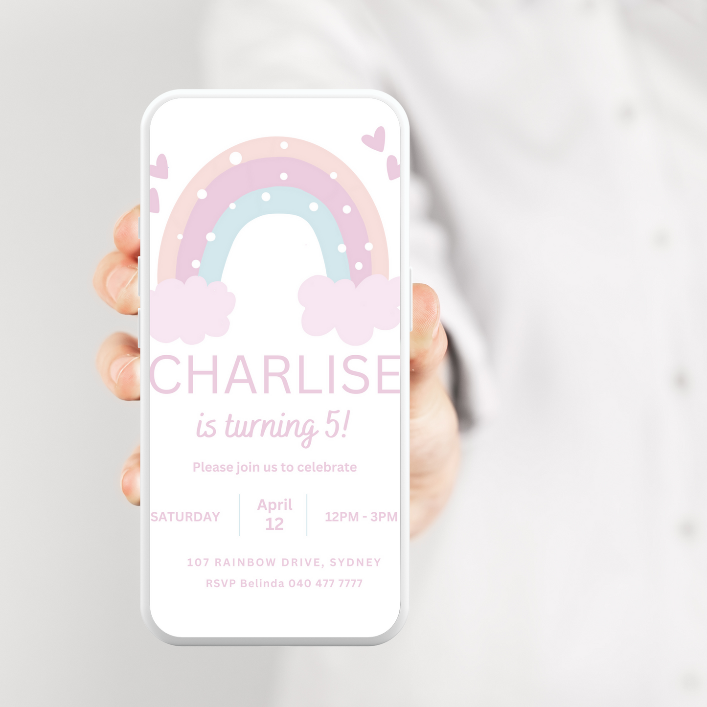 This pretty pastel rainbow birthday editable invitation that you edit yourself is very easy to edit and send to your guests with the information for your event.