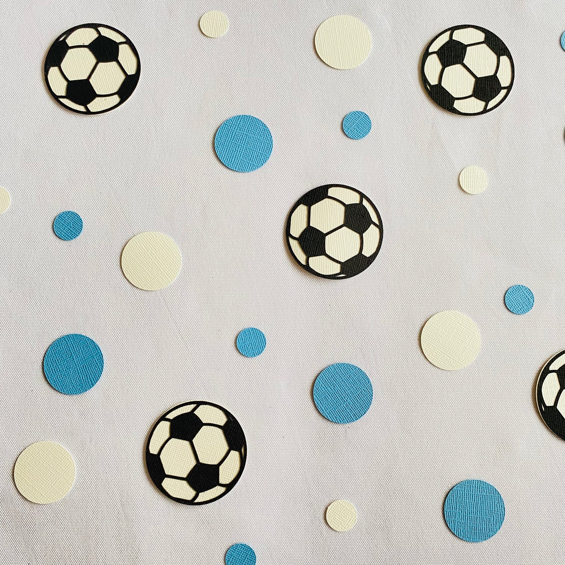 20 Soccer ball cut-outs which are 5cm or 2 inches round. The Soccer Balls are one-sided and are hand glued.
