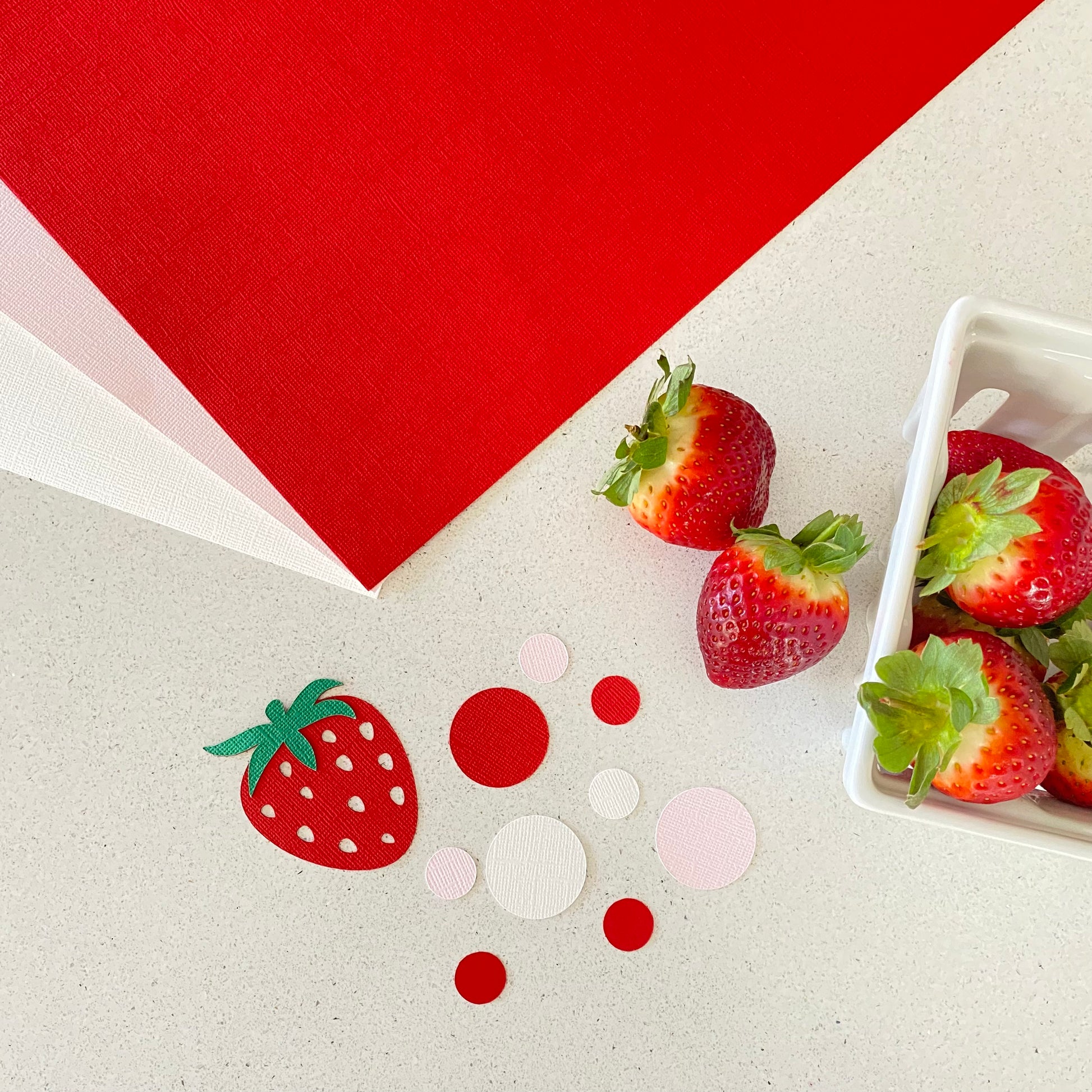 Designed by me and made from high-quality card stock. I hand glue each green stem to the red strawberry.