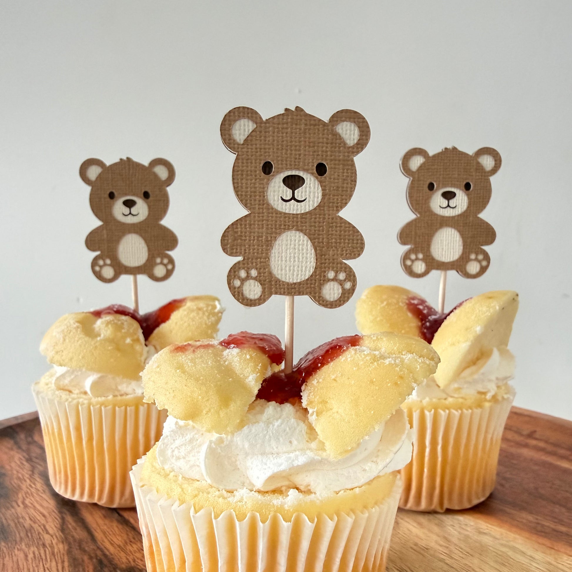 Add a sweet finishing touch to your celebration with these teddy bear cupcake toppers, designed in soft, neutral brown tones for a timeless and gender-neutral look.
